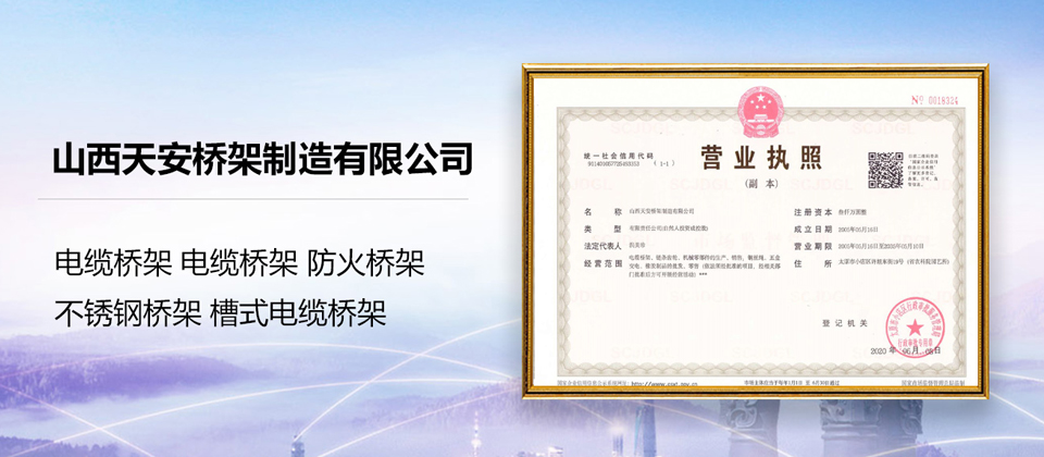 山西天安橋架制造有限公司是一家生產(chǎn)電纜橋架、母線(xiàn)槽的大型廠家,主要生產(chǎn):槽式橋架、托盤(pán)式橋架、梯級(jí)式橋架、大跨距橋架、母線(xiàn)槽有空氣型、密集型、耐火型、鋁合金等以及通風(fēng)管、可根據(jù)客戶(hù)要求定制各種型號(hào)各種規(guī)格,表面處理有熱鍍鋅、防火噴塑、防火漆、熱鍍鋅等,產(chǎn)品廣泛應(yīng)用于石油、化工、治金、電力、紡織、通訊、高層建筑等各個(gè)領(lǐng)域。產(chǎn)品具有外形美觀,耐腐蝕性強(qiáng),安裝靈活方便,品種齊全等特點(diǎn)。